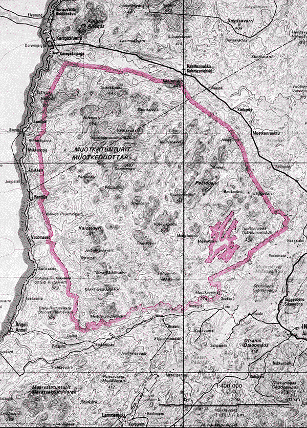 4) Muotkatunturin alue, johon kuuluu noin 157 000 hehtaaria valtion omistamia alueita Utsjoen ja Inarin kunnissa (liite 4);