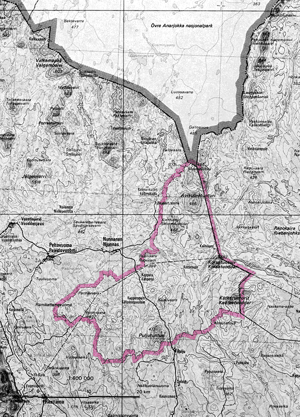 1) Käsivarren alue, johon kuuluu noin 221 000 hehtaaria valtion omistamia alueita Enontekiön kunnassa (liite 1);