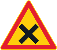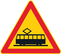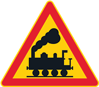 14) tasoristeyksellä liikennemerkillä merkittyä samassa tasossa olevaa tien ja erillisen rautatien tai raitiotien risteämää;