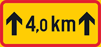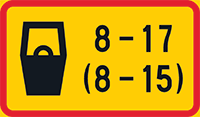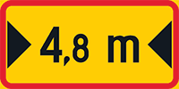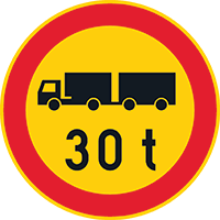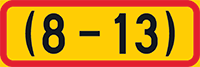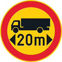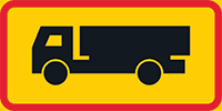 Yli 15,5 metrin pituisessa, kuorma-auton ja perävaunun tai perävaunujen muodostamassaajoneuvoyhdistelmässä tulee olla E-säännön n:o 70 alkuperäistä versiota tai sitä uudempaamuutossarjaa vastaava tunnuskilpi. Vaihtoehtoisesti ajoneuvoyhdistelmässä saa olla25 mm levein punaisin päiväloistevärillä maalatuin tai heijastavin reunuksin varustettu vähintään0,30 m × 0,80 m mittainen kilpi, jossa on keltaisella heijastavalla pohjalla mustaajoneuvoyhdistelmän kuva, jonka alla saa olla merkintä yhdistelmän pituudesta. |